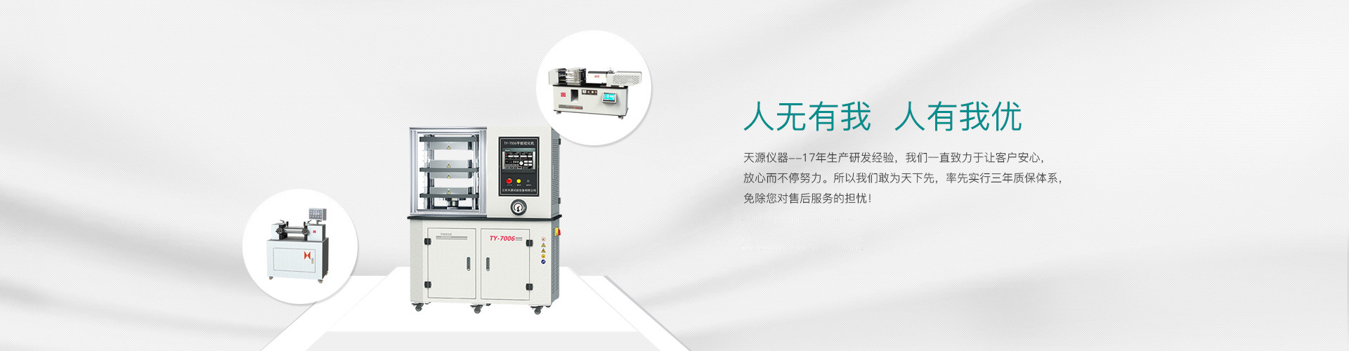 “江蘇天源”經(jīng)過15年的錘煉,現(xiàn)有員工50余人,公司設(shè)有電子式萬能試驗機(jī)、塑料物理檢測儀器、橡膠物理檢測儀器和高分子材料制樣設(shè)備4條產(chǎn)品線,為用戶提供全系列的電子萬能試驗機(jī)(10N-600Kn)、全系列高分子材料檢測儀器及高分子材料工藝應(yīng)用培訓(xùn)與研發(fā)。